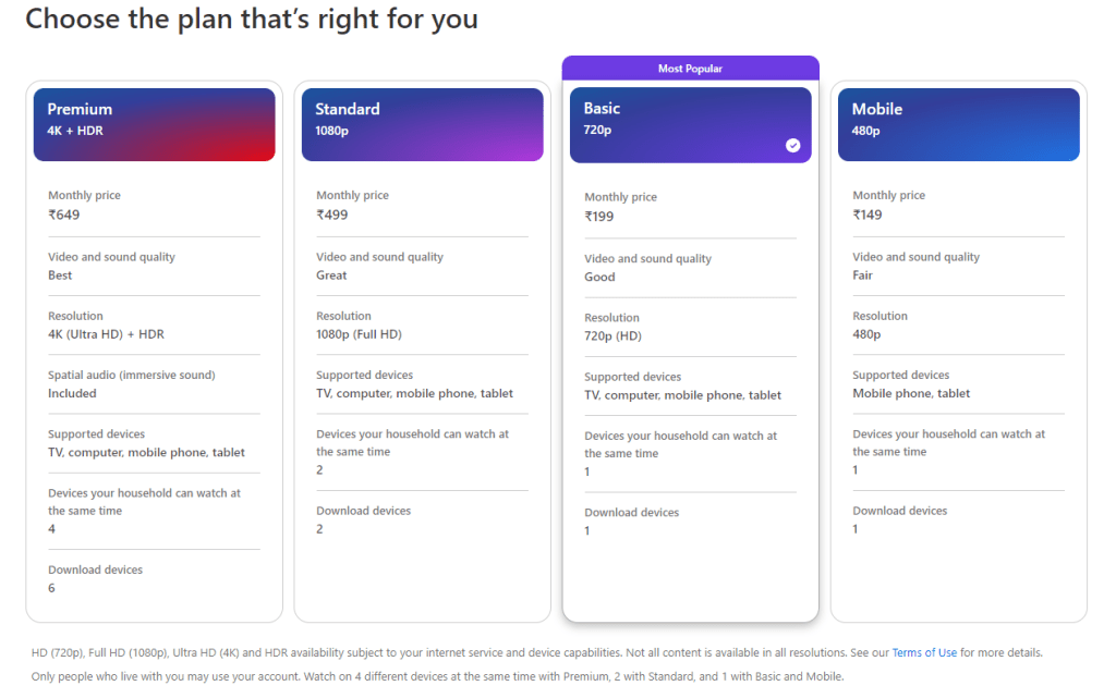 - Versatility: Unlike the ₹149 Mobile plan, the ₹199 Basic plan allows you to stream on any device – smartphones, tablets, laptops, or even smart TVs. This provides greater flexibility for your viewing experience.